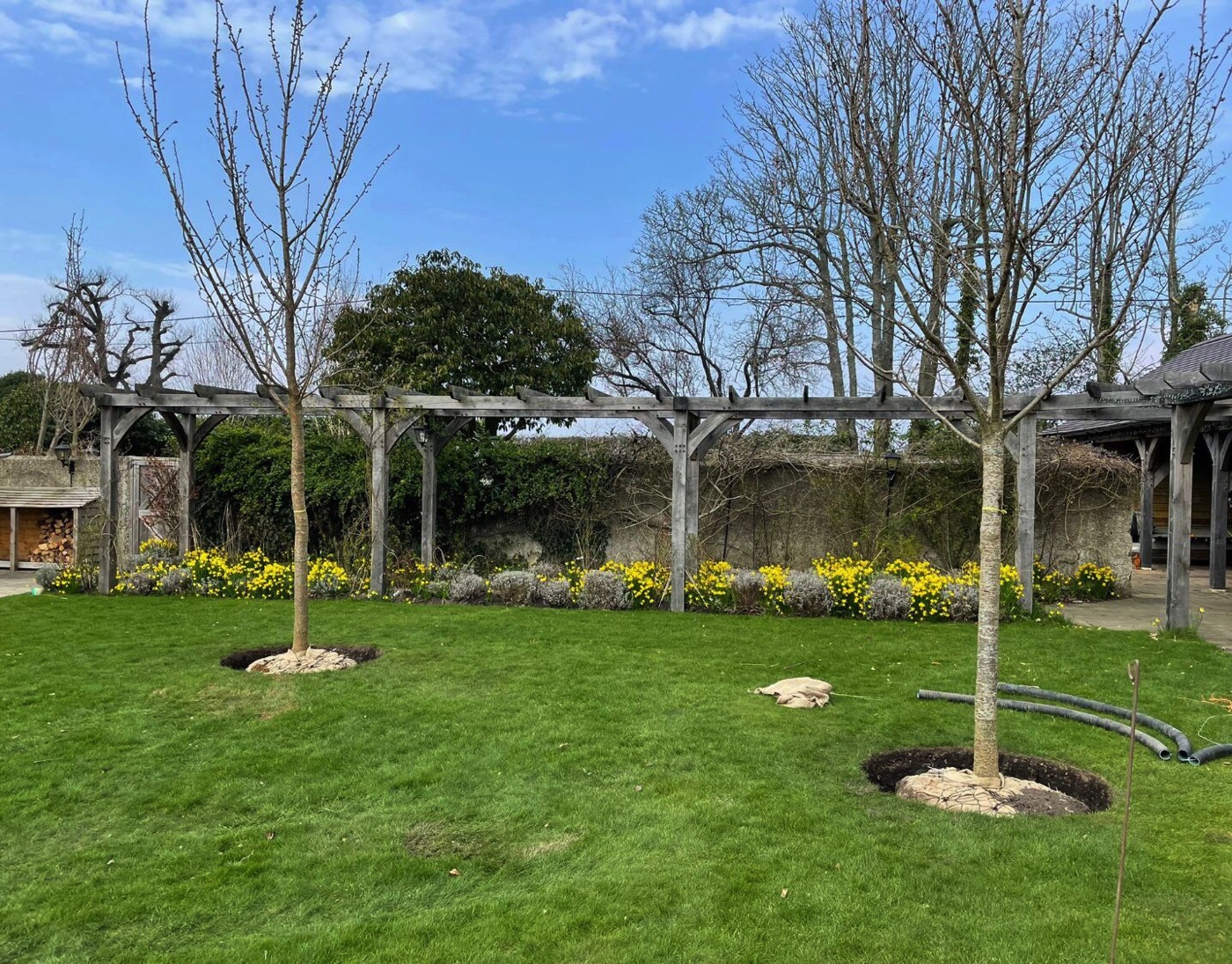 Our teams are skilled in soft landscape and planting techniques. We can produce a planting design for you (subject to design fees) and can supply and plant your garden. All plants are sourced from our partnered growers and nurseries. We work from live availability lists to ensure plants are available. From alpines through herbaceous and perennial species, fruit and more specific feature plants like Japanese Acers to hardy shrubs both typical garden centre sizes and larger more established specimens can be selected depending on your brief and requirements. All planting is undertaken with pro-grow compost and optional mulching to give your plants the best start. Again we recommend a watering system to aid development of your new plants.
